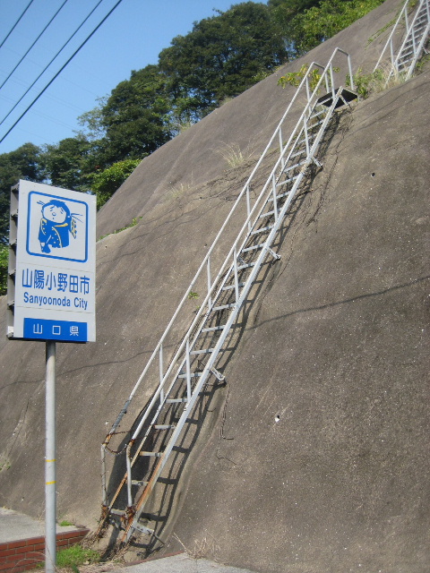 市境標識の脇にアルミ梯子が掛かっており、登りたい衝動に駆られた。