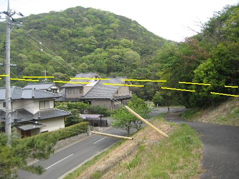宅盤整備が始まる以前は、古道はさほど高度を下げず、現在ある家の屋根あたりの高さを通っていたのだろうか。