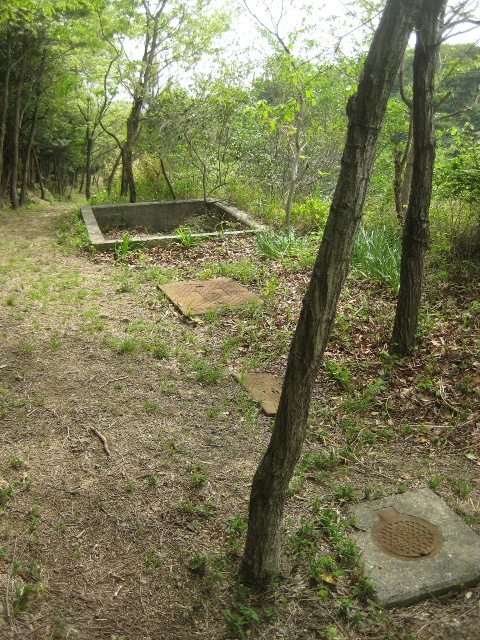 前編ではこれを「土取り場に給水するための設備」と推測したが、後から思うに中継配水池の跡ではないかと考え直している。