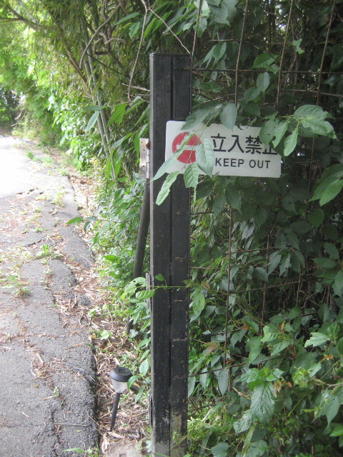 立入禁止の表示板が藪に埋もれていたのだ。