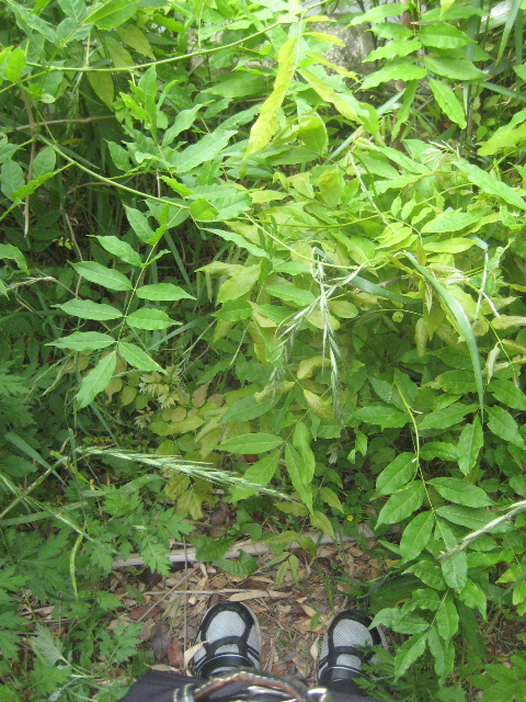 足元はこんな塩梅なのだ。フジと思われるツル性の植物が生い茂っている。あまり近寄りたくないし手足でかき回すのも正直嫌だ。