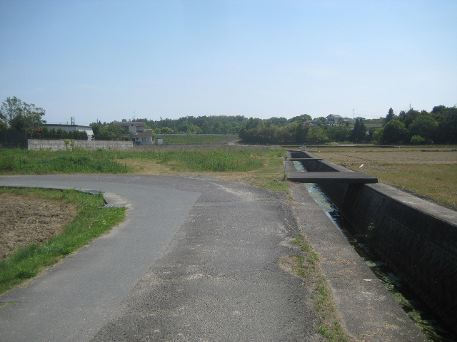 溜め池に向かおうとしているのだから、下流側から攻めていけば何処かで流出する川を渡る。宇部東I.C.から市道へ移り、豪快な下り坂を転がり降りる途中で五反田川を渡った。写真は省略するが、多口田橋となっていた。