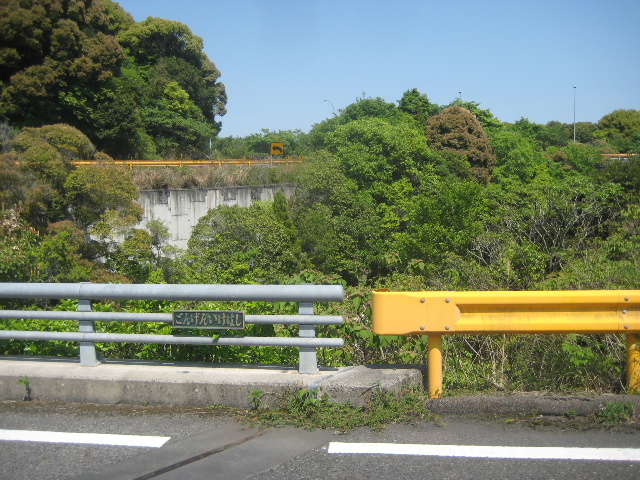 溜め池の手前で大きくカーブしているのは上り線流入用のランプである。