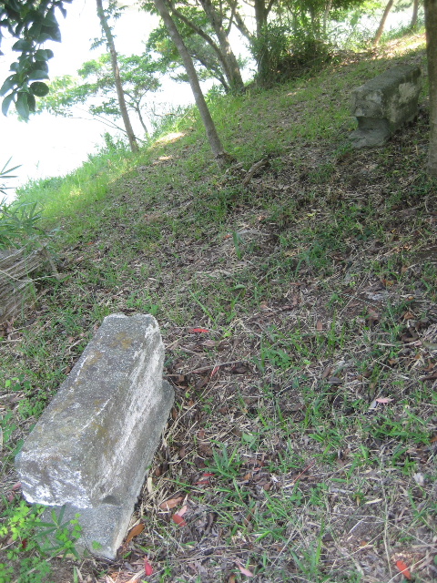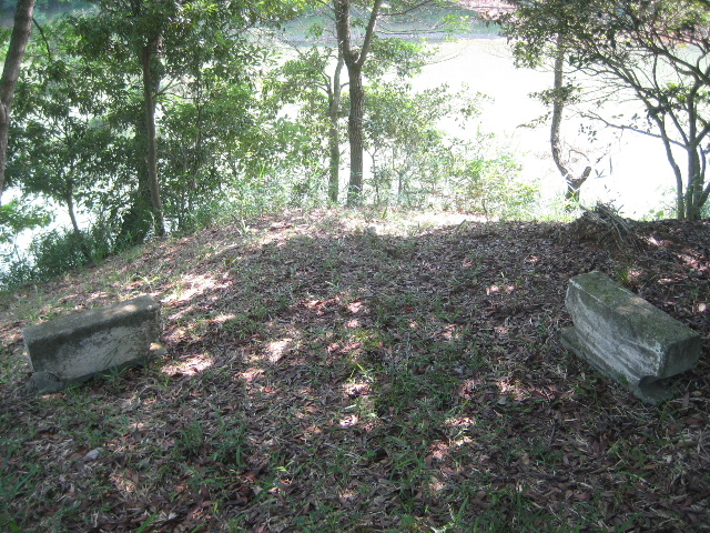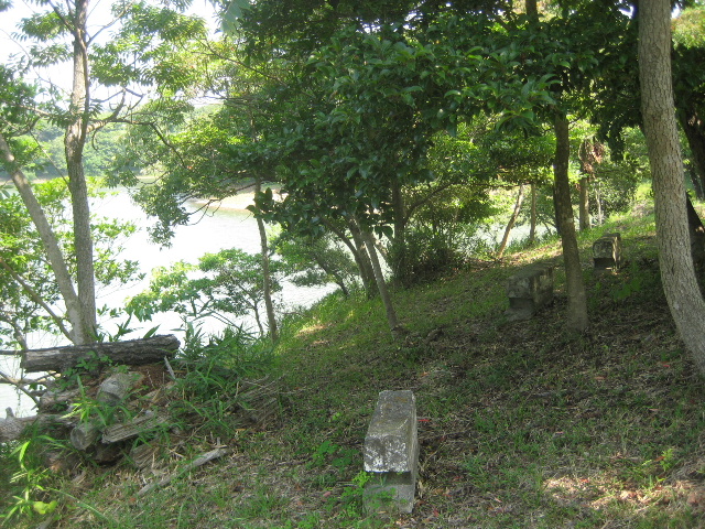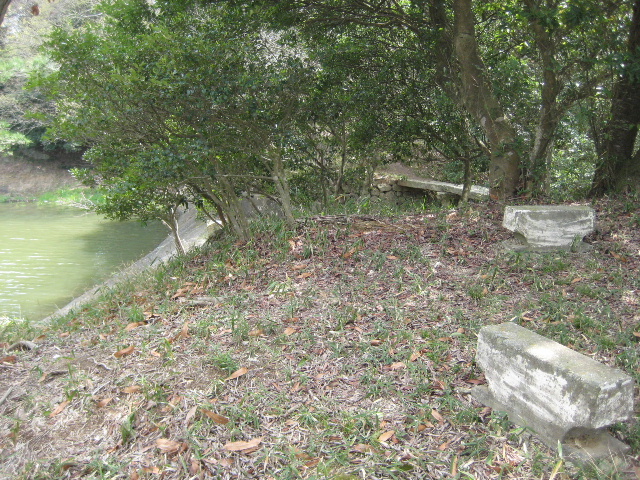 何個かのかなり古そうなコンクリート塊が溜め池を向くように配置されているのである。