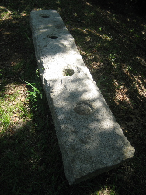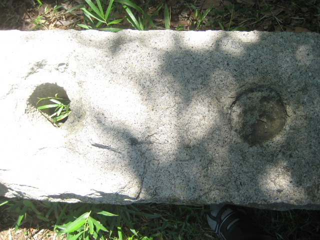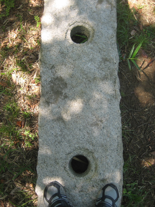 樋管は溝状に削られた方を下向きに設置されている。支え石を入れて若干浮かせているので、恐らくベンチを意図したのだろう。