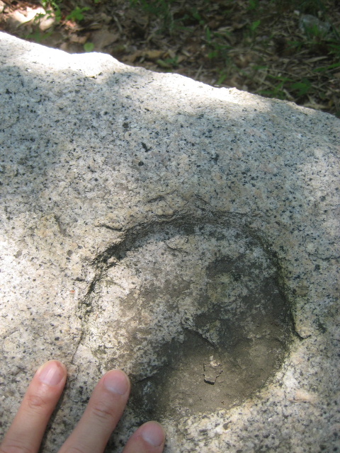 かつて木の栓を押し込んでいたと思われる穴は、上部が同心円状になるように削られていた。