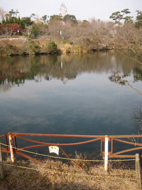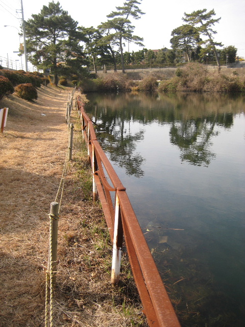 一般に人工溜め池の本土手付近は一番深い。水が溜まっているから分からないだけで、この柵から向こうは壮大な急斜面になっている筈である。数歩進むだけで大人でも足が届かない深さだろう。