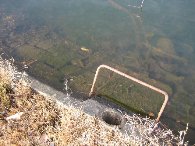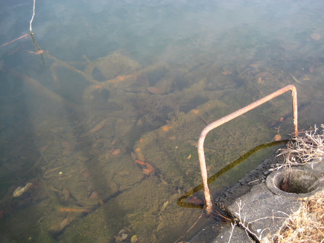 この樋管がある以上、清掃のときなど必要に応じて開栓し水位を下げている筈だ。もっとも夫婦池に関しては水位が下がったのを一度も見たことがないので、水位を下げての定期清掃がどれほど行われているのかは定かではない。