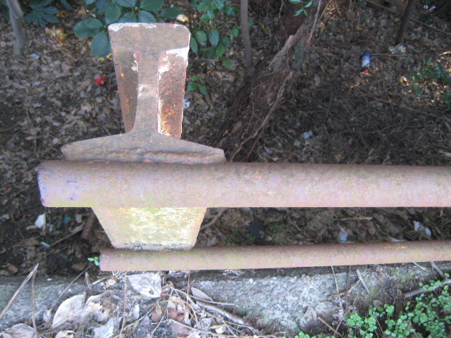 距離標補助(16K500)のある少し先から歩道幅が若干狭くなっている。その外側に歩道拡幅以前の古い柵を見つけた。