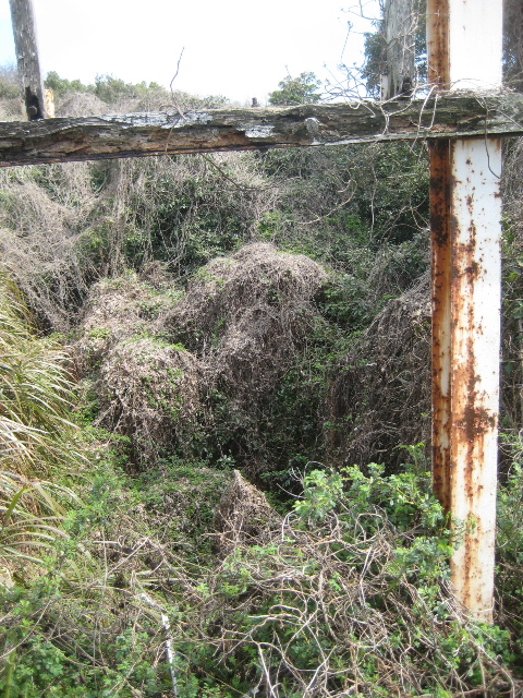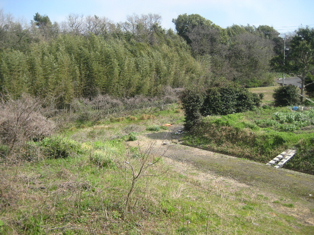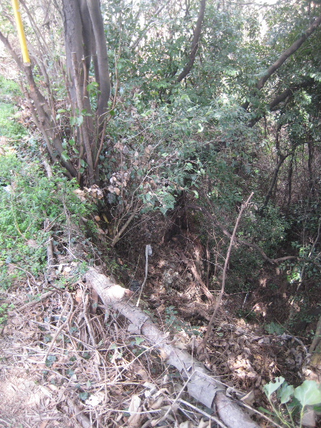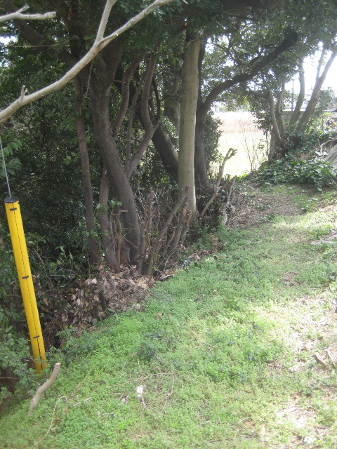 電信柱のつっかい棒がある近くで藪がやや薄く見通せる場所があった。
