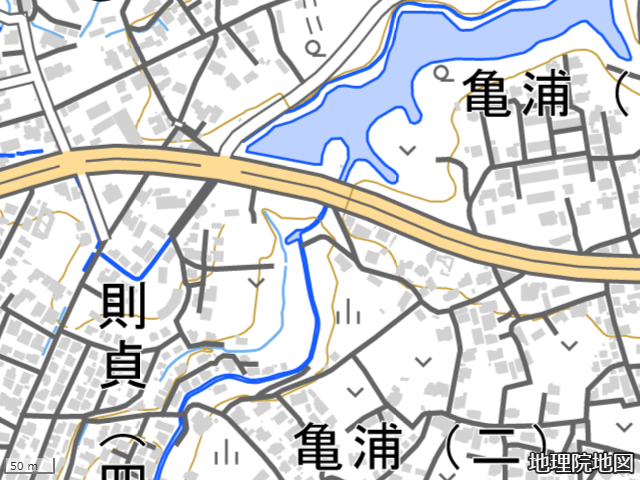 この付近の地勢を調べるなら国土地理院地図の方が等高線が表示されていて分かりやすい。