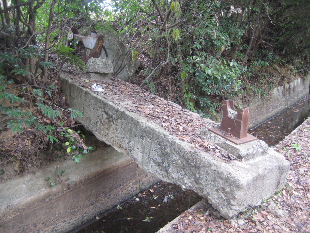 ・本土手のほぼ中央部に斜樋が存在する。ただし夫婦池は常時水位が高いために全体が水没しており位置が分かりづらい。斜樋自体は殆ど操作されていないらしく、ごく微量の水が流出している。