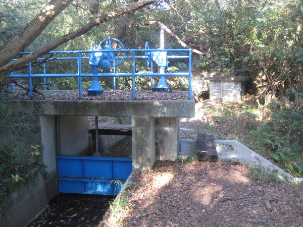 階段を下りると、本土手樋門から取り出した常盤池の水を用水路と夫婦池に振り分ける樋門がある。