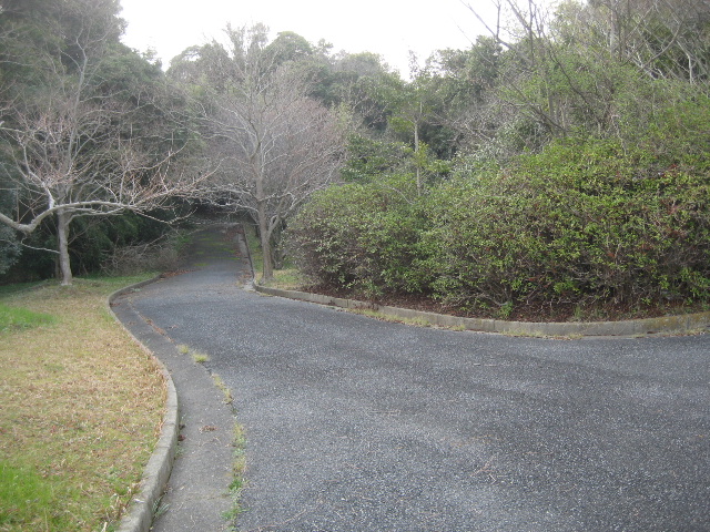 ブロック積擁壁と行き止まりの遊歩道が見えている。