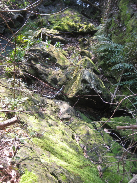別に祟りだとか畏れ多いという感覚ではないが、遊歩道や石橋の上からでも充分に眺められる。特にこの場所は危険が予測されるし、単なる好奇心からの昇降で年月かけて露岩にまとわりついた苔を足蹴にしたくない気持ちもあった。