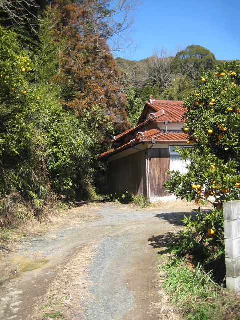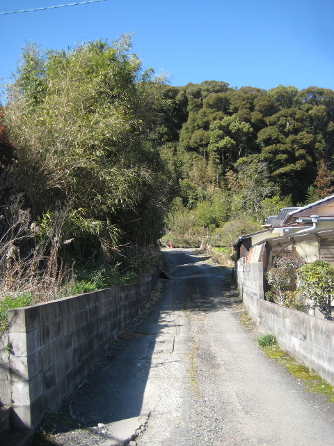 一本道は民家の庭先へ入り込んでいた。その横を通って更に山側へ向かう道が…なさそうな気がする。