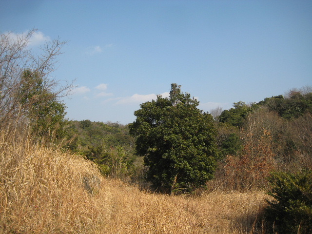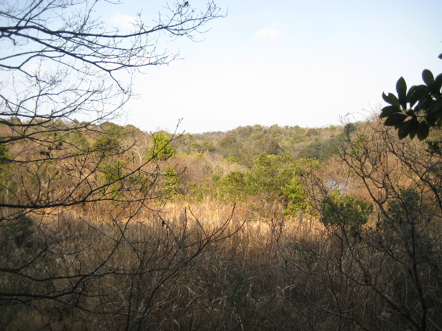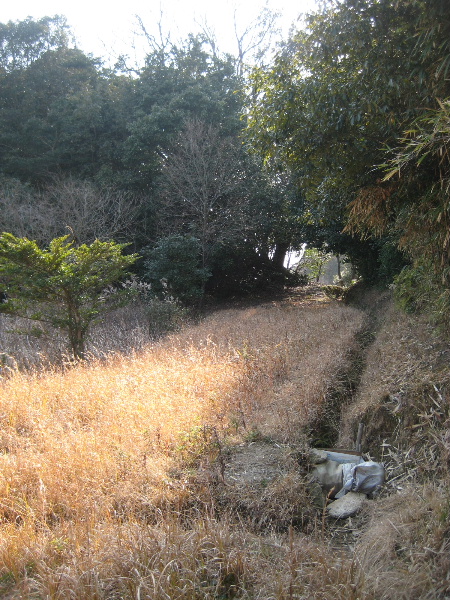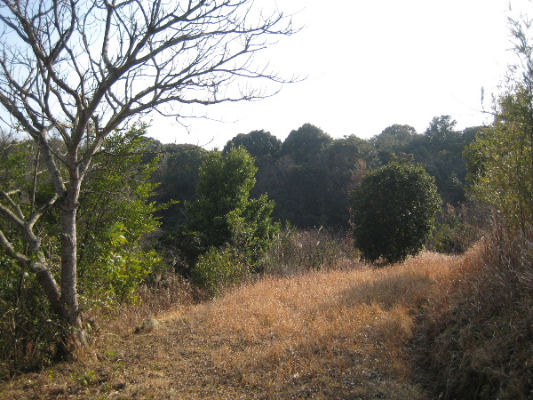 写真には入っていないが、雛壇は現在地より高い場所に一段、低い池の方には数段あるようだった。もっとも雛壇のようになっているという地形が窺えるだけで、雑草だけでなく背丈の高い樹木まで進攻していた。