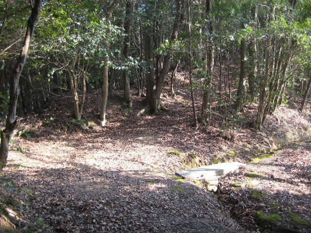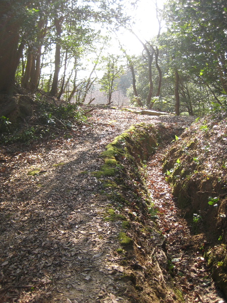落ち葉で滑りやすい坂道を一気に下ってここへ舞い戻ってきた。それにしても…なかなか遠回りをさせてくれる溜め池だ。如何にも無駄歩きが多い。一向に踏査が進まない上に溜め池の写真も現れず、結構焦れったくなってきた読者が多いことだろう。