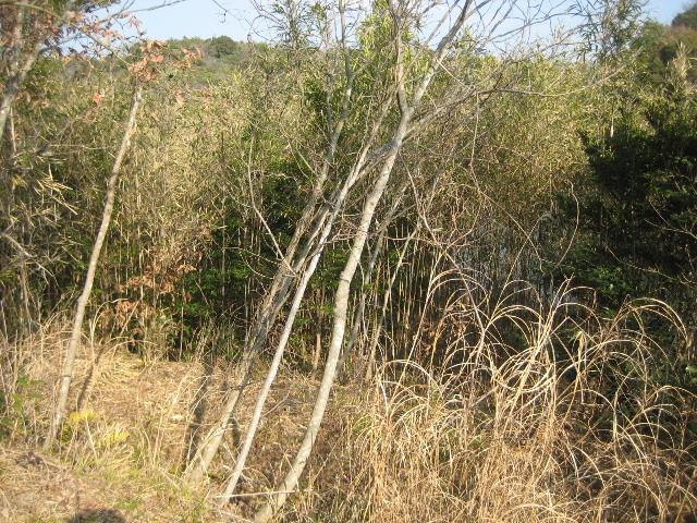現地の自分は突撃開始地点の写真すら撮っていなかった。撮影したところで全く何処にでもあるような藪で、記録する意味もないと思われたからである。改めて自転車を留め置いた場所から数歩ほど堰堤方向に進んで振り返って撮影している。