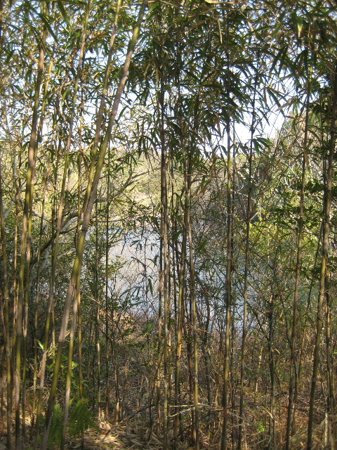 周囲は酷い笹藪…日当たりが結構良いせいで密集度は高い。しかし藪の隙間から対岸にそれらしきものが見えかけている。