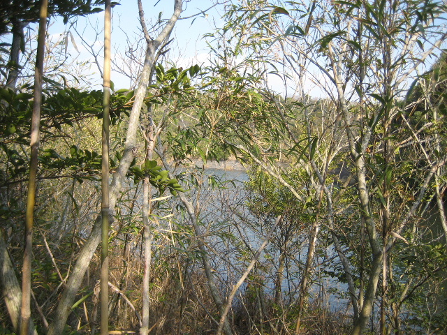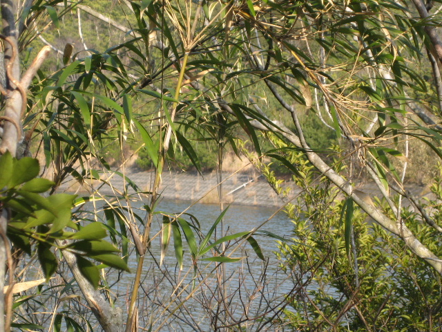 棚田の端まで来たところで漸く水面が見え始めた。もっとも自然の汀で堰堤は見あたらない。