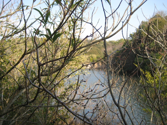 現在地は池の南側に伸びる細い入り江の対岸から眺めていることになる。