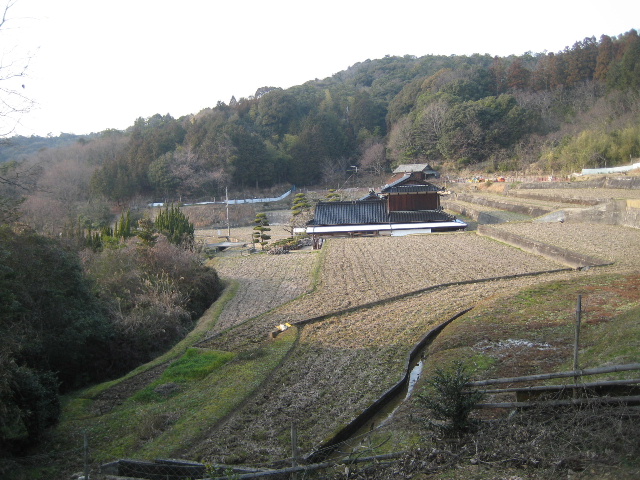 農道は先で大きくカーブして先に見える民家付近に降りてくるようだった。