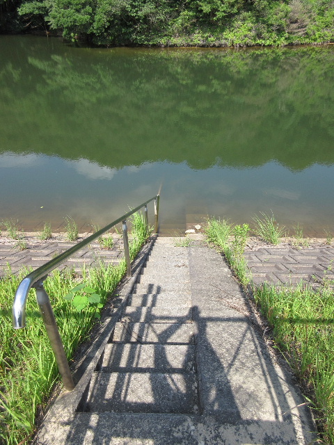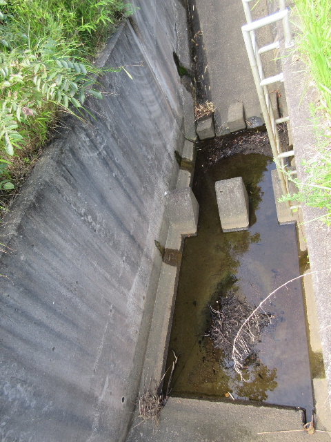 樋門部分はコンクリート製階段で、ステンレスの手摺りがついていた。