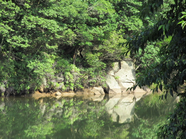 これは自然に岩が寄り集まったのではないと思う。この池の改修を行うか何かで発生した岩を人為的に入り江の一箇所に寄せ集めたように思える。バラバラに大岩だけが積み重なるような地形など聞いたことがない。