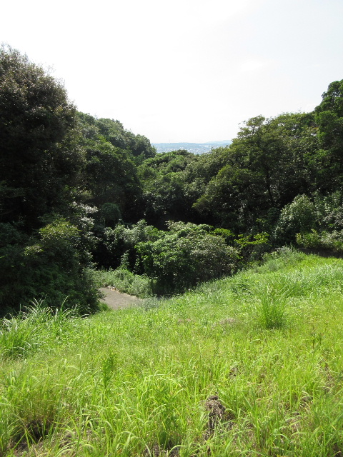 あれほど急な斜面を登ってきたのだから下界がよく見える筈だが、生い茂る雑木であまり眺めが効かない。