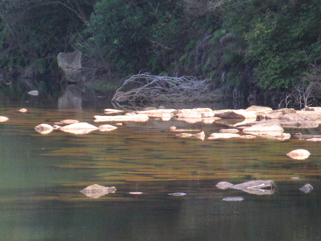 何となく岩の並びが不自然な気がする。殆どが水面下にあるのだが、その天端が殆ど同じ高さに揃っている。斜め上から低い角度でズーム撮影しているので写真自体も何だか奇妙だ。[1]