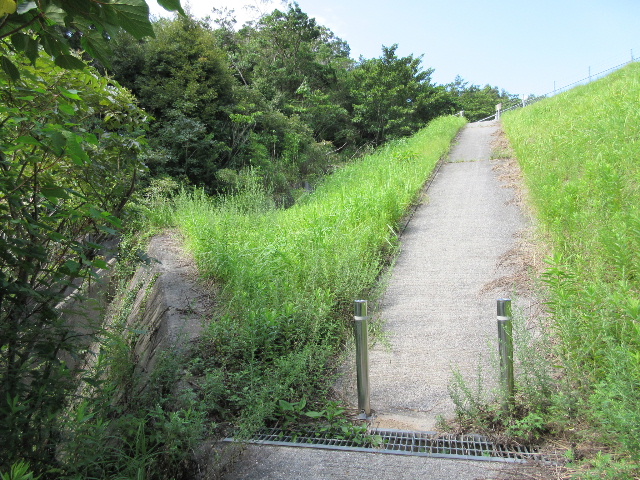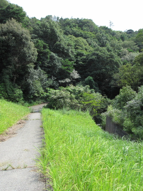 来るときから想像つくように帰りはこれほど高い場所まで到達していながらあまりに坂が急で位置エネルギーを利用できない。本当ならサドルに跨っているだけで距離を稼げる一番美味しい状況の筈なのだが…逆に自転車が自走を始めないよう保持しつつ足元の悪いコンクリート路を歩いて降りるという状況だった。ハッキリ言って登りを押し歩きする以上に労力が要った。本当に性根が入った。初めて工業用水道を調べたときのように自転車を市道のところへ留め置いて歩くべきだった。