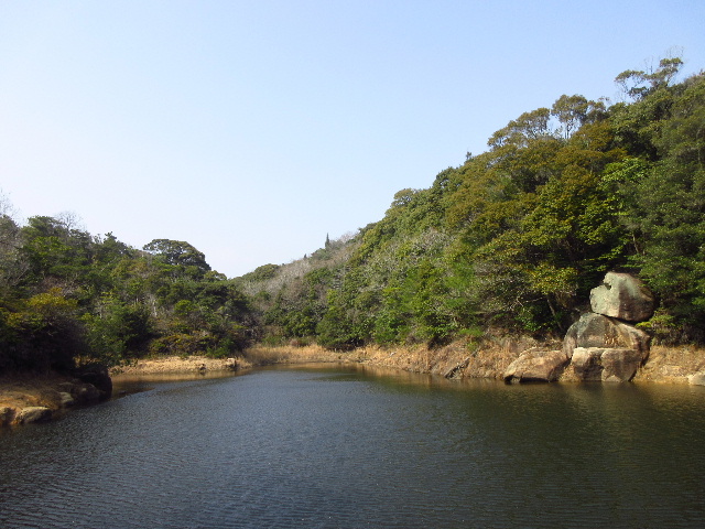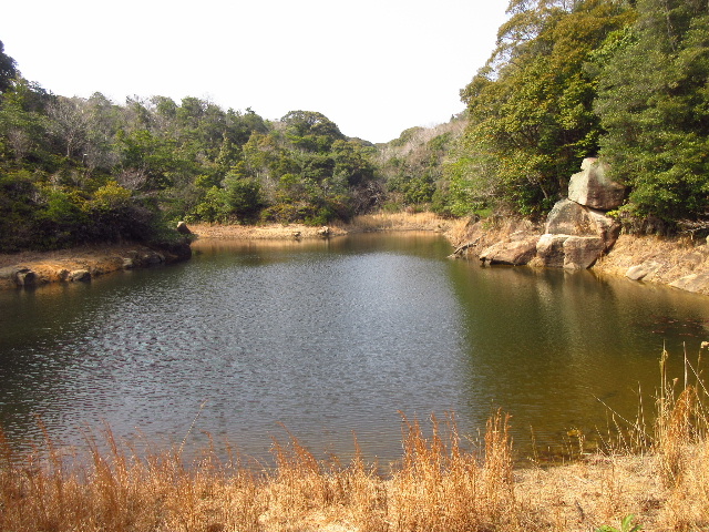 比較的露岩の少ない西側も溜め池の半ばまでしか辿ることができない。