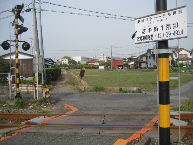 (宇部興産工業用水導水路もこの踏切付近の地下を通過している)