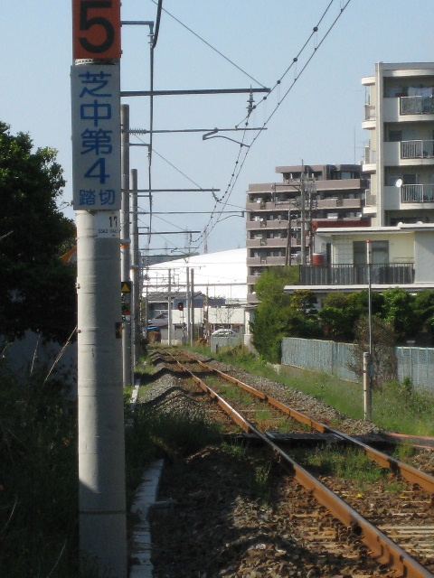 踏切自体は国鉄時代からあった筈だが、表示板の設置は民営化後のことだ。場所を特定するのに必要だからだろうか…芝中第3踏切という名称が確認できた。
