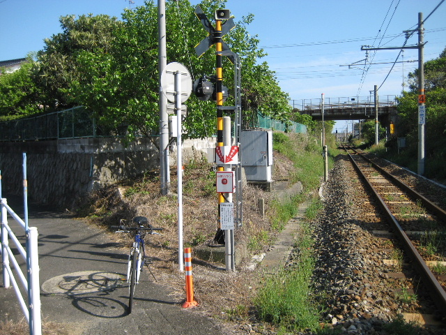 自転車の元に戻り、先ほど見た存在意義の不明なミラーから下る道を進んだ。その細い地区道の先に第4踏切がある。