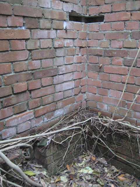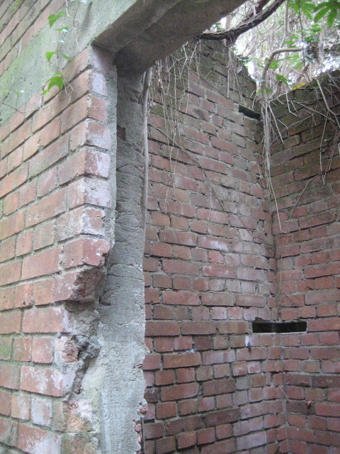 屋根部分がどうなっていたのかはこの形状からは見当も付かない。レンガも不定形に破壊されている。