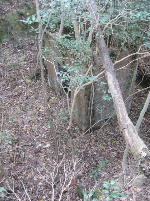 火薬庫とレンガ隧道の双方を同時に収めるアングルで、木の枝が覆い被さらないような場所を何とかみつけて撮影した。