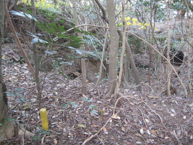 一つ目は火薬庫のすぐ裏手にあった黄色い境界杭。