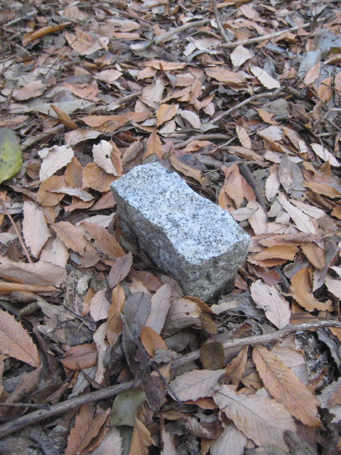 御影石は地面に転がっているのではなく地中深く刺さっていてまったく微動だにしなかった。側面には漢字一文字が陰刻されているように思われたが何の文字かは読み取れなかった。先のプラスチック杭よりは古い境界石だろう。