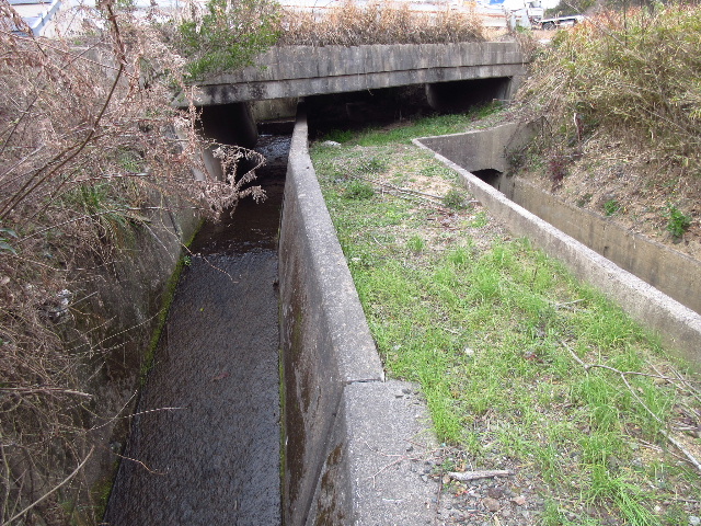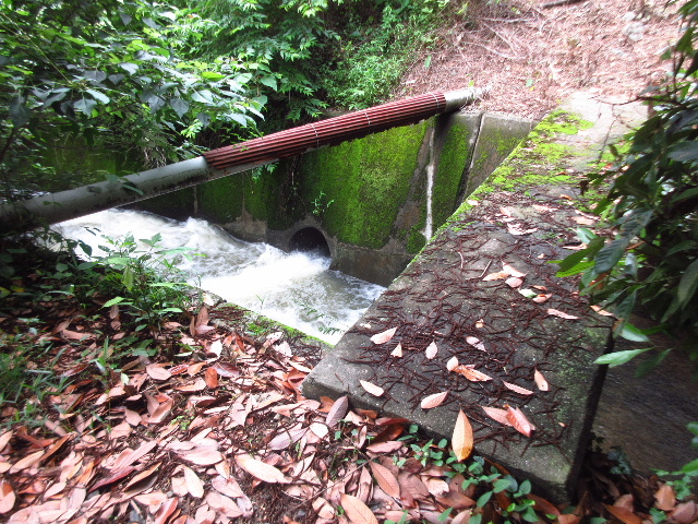 蛇瀬池に向かって南下する途中、市道中山線沿いに一ヶ所径1000mm程度のヒューム管となっている場所がある。