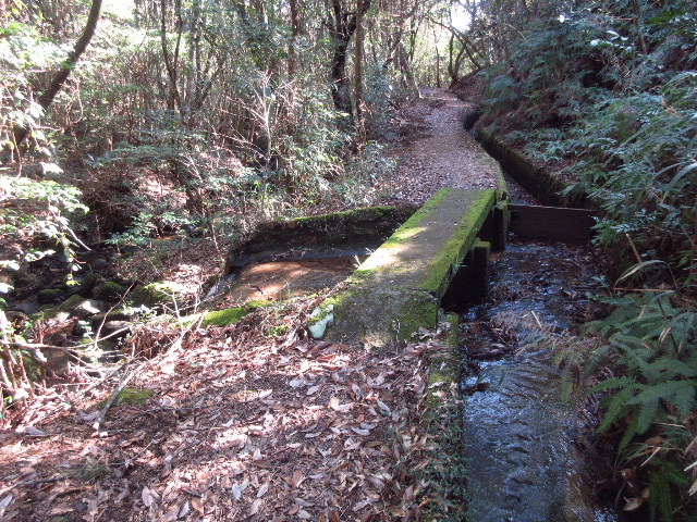 コンクリート三面張り水路は数段の落差をこなしてその先で蛇瀬池の出水口に出会う。