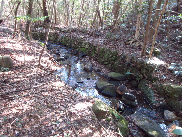 これより下流側の一部には時代の分からない古い石積みが見られる。