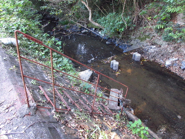 下流は市道から離れており藪が酷く完全に追跡することはできていない。この藪を抜ける付近より蛇瀬川は両護岸がブロック積みに変わる。