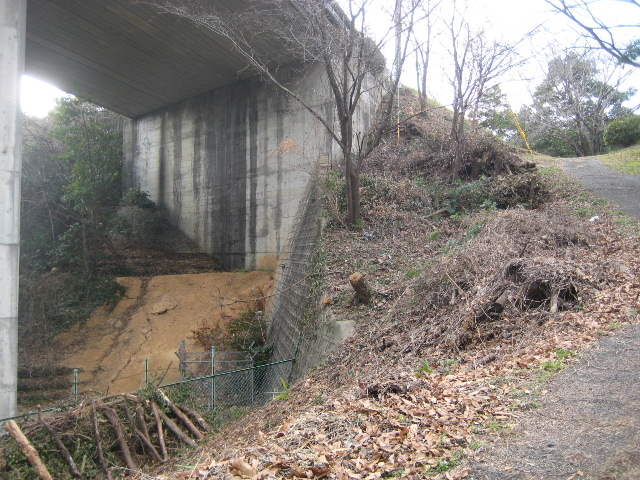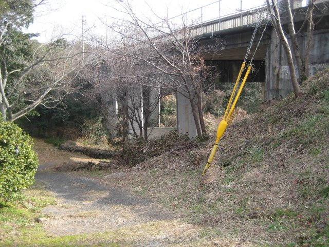降りる道はかなりの急勾配で市道小羽山中央線の蛇瀬橋の下をくぐって回り込んでいる。