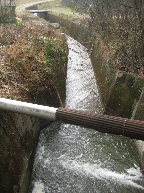半分水没したヒューム管が見えていてコンクリート桝に水を吐き出している。水の流れも穏やかだった。