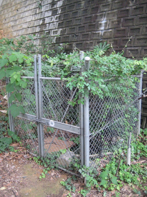 夏場だったので出水口付近のフェンスは藪で侵食されていた。