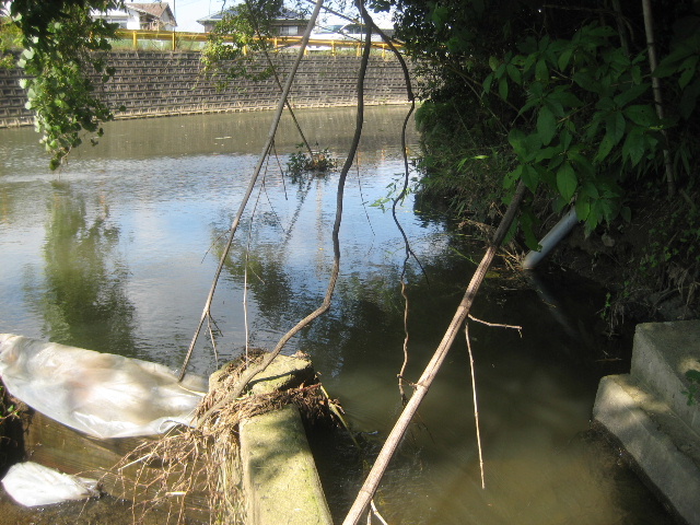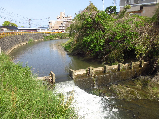 灌漑用水需要期には井堰の水が左岸側の水路へ導かれるが、現在では用水を引く田がないらしく、田に向かう用水路側を堰き止めて全量がそのまま真締川へ返されている。