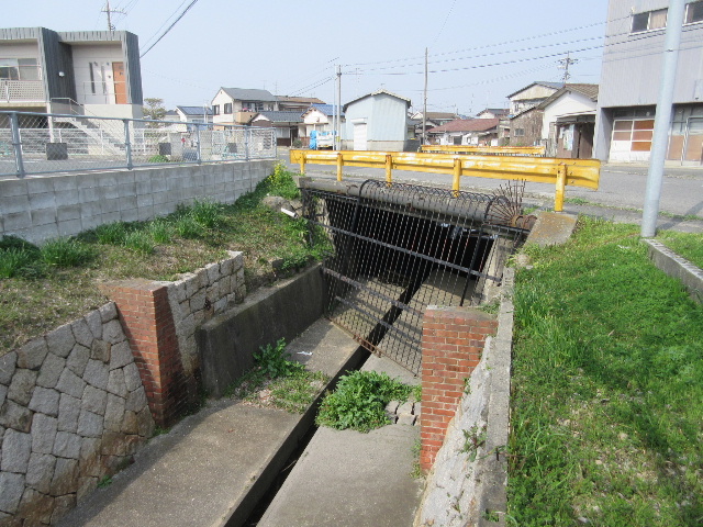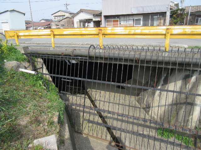 水路が市道の下をくぐる部分は割と最近ボックスカルバートになったのだろうか…正規の橋としての親柱はなく、県仕様の黄色いガードレールが設置されているだけだった。