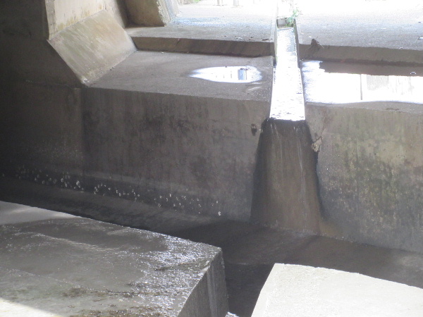そこへ来てこの干上がった水路部分の側面構造は奇妙である。